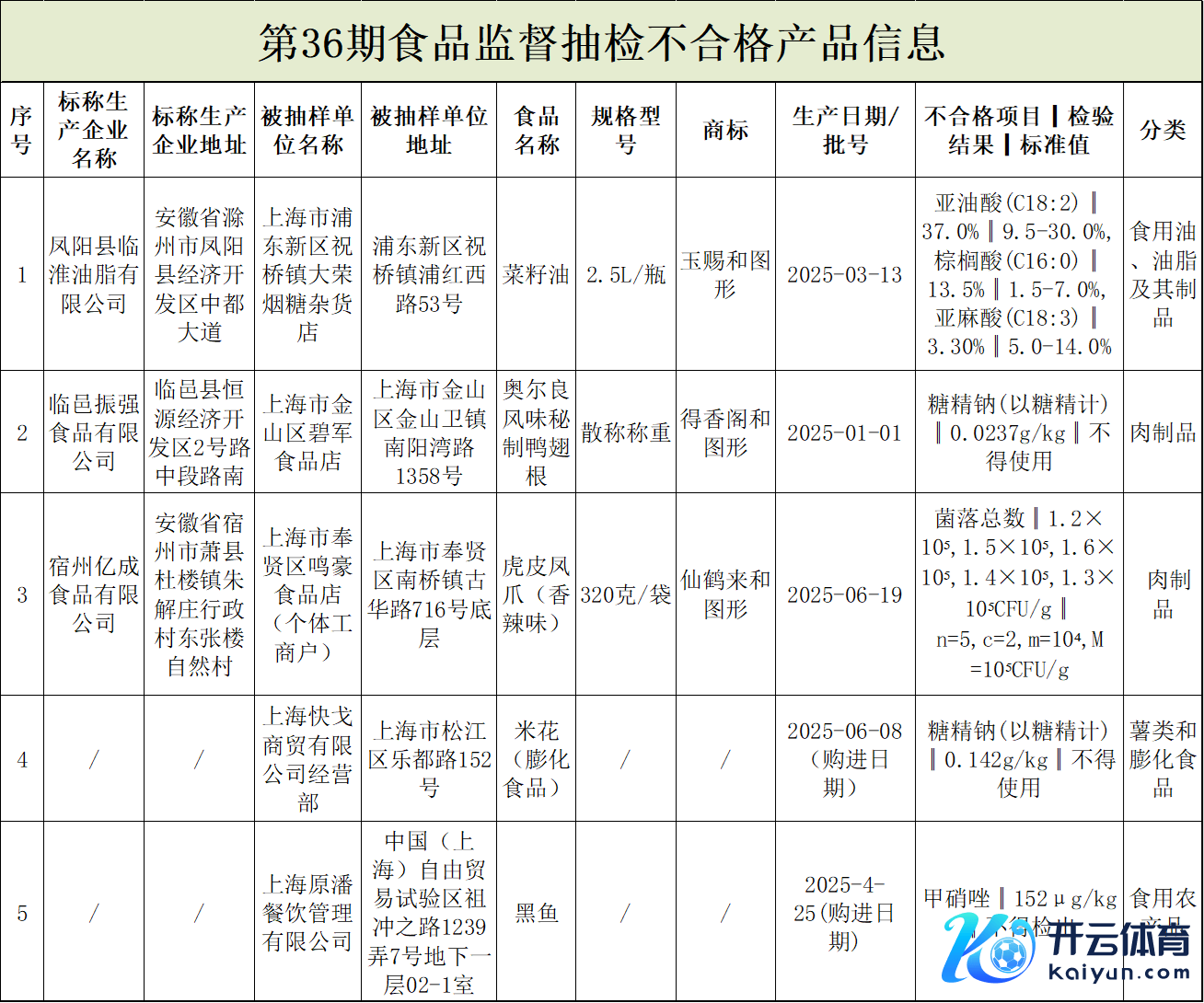 近日,上海市阛阓监管局公布2025年第36期省级食物安全抽检信息。本次抽检信息波及7大类食物,包括蛋成品、豆成品、肉成品、食用农居品、、油脂过甚成品、薯类和膨化食物和糖果成品。抽检样品所有这个词684批次,其中及格679批次、不对格5批次。