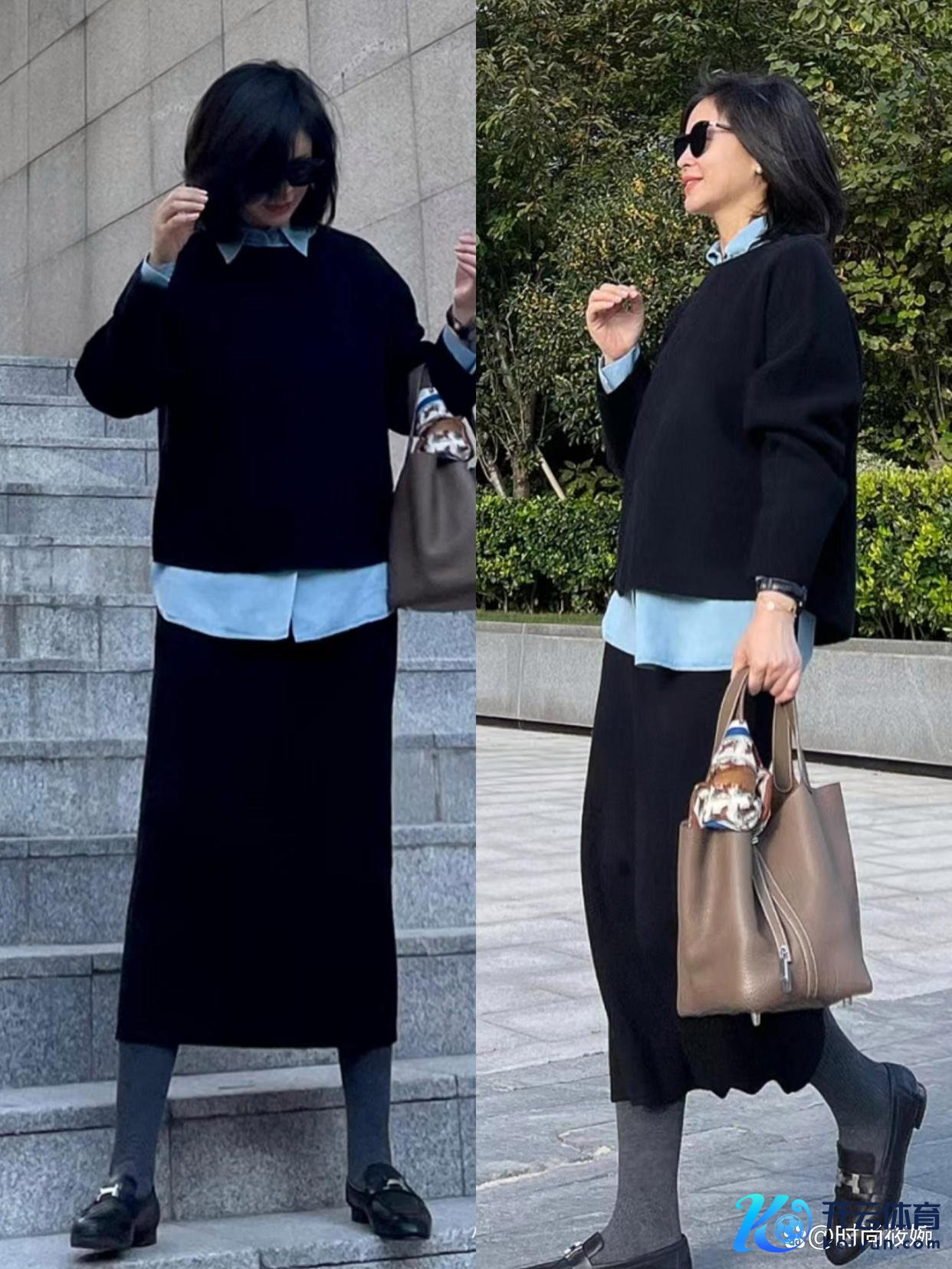 这里着紧迫说的便是下装材质,从博主上身成果来看,各人不错聘用西装半裙也不错聘用牛仔半裙,不错聘用缓和诚笃半裙也不错聘用立体口袋的工装半裙。