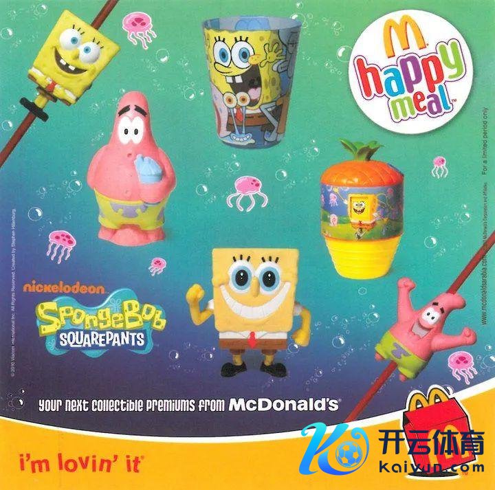 聊到始终讨好玩物,《海绵宝宝》一定榜上著明。2007年,《海绵宝宝-亚特兰蒂斯探险之旅》上映,麦当劳推出一组12件海绵宝宝玩偶;2008年,《海绵宝宝-西部大冒险》上映,加入派大星、章鱼哥、珊迪等主角带来 8 款有型有款的玩物。