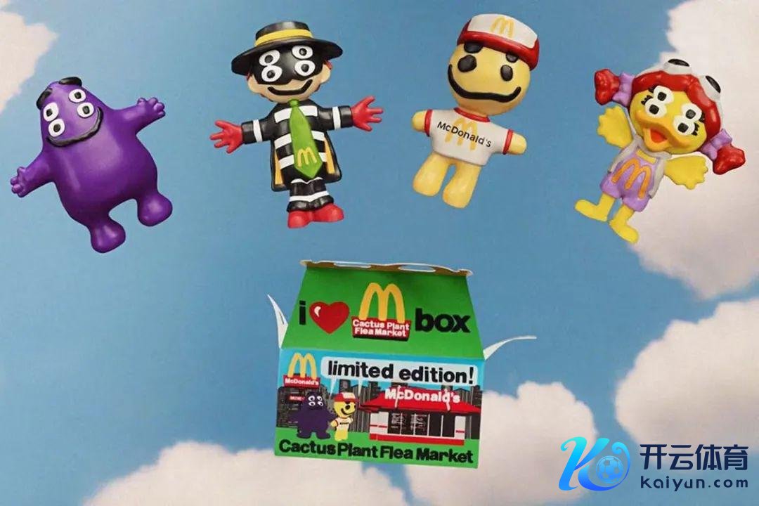 2022年,McDonald’s x Cactus Plant Flea Market 联名系列除了推出衣饰商品外,还带来了以经典变装 Hamburglar、Birdie、Grimace 以及 Cactus Plant Flea Market 祯祥物 Cactus Buddy 为原来所打造的「四眼公仔」,玩物因颠覆 McDonald’s 格调而大获关心,推出初期在二级市集均纷纷出现炒价波浪,高达4位数,但如今转卖市集均价 25 好意思元便可起首单个玩物。