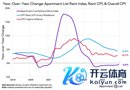 Apartment List空置率指数保管6.8%(上个月为6.8%),为2020年8月以来最高水平,提升了疫情前的水平且达到疫情时的最高水平。频年来,空置率的上涨主要归因于多量新多户型住宅涌入市集。2023年创下了30年来新多户型住宅已毕数目的新高,而2024年的已毕数目更是进一步攀升。尽管最近新建筑许可证的披发和新建筑项主义开工有所放缓,但仍有近80万套多户型住宅正在竖立中,这意味着供应激增将抓续到2025年。