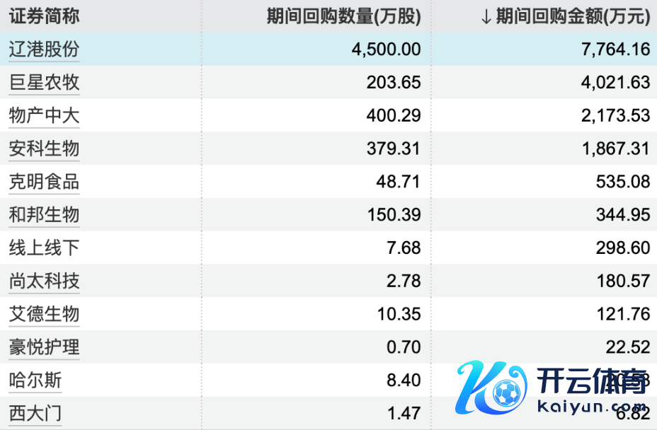 12家上市公司股票获回购开云体育(中国)官方网站,辽港股份回购金额最高12家上市公司股票获回购,辽港股份回购金额最高